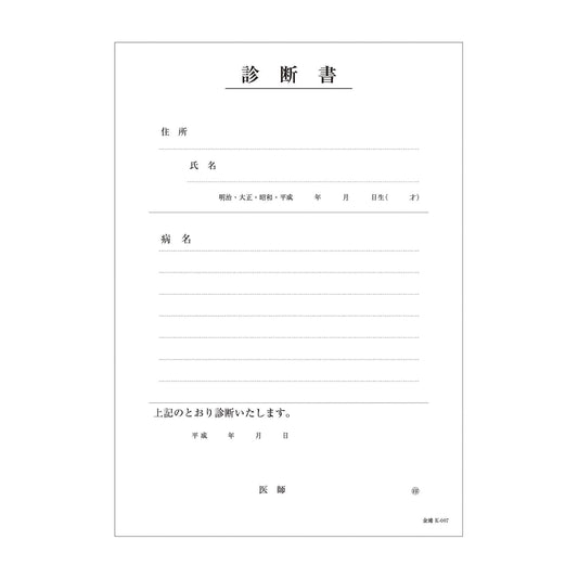 診断書(B5・複写) K-007(B5) カルテ 24-3051-00 金鵄製作所(kinshi) K-007(43029-000)
