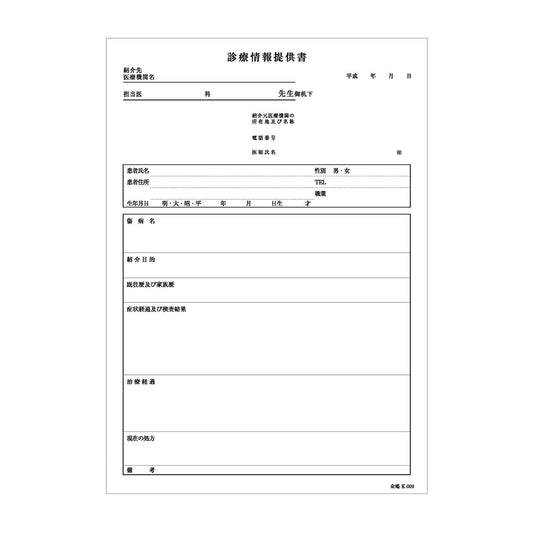 診療情報提供書(B5・複写) K-009(B5) カルテ 24-3051-01 金鵄製作所(kinshi) K-009(43129-000)
