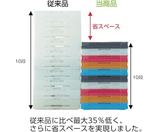 The folded height has been maximized to a maximum of 35% lower than conventional types, allowing for significant savings in transportation costs and storage space.