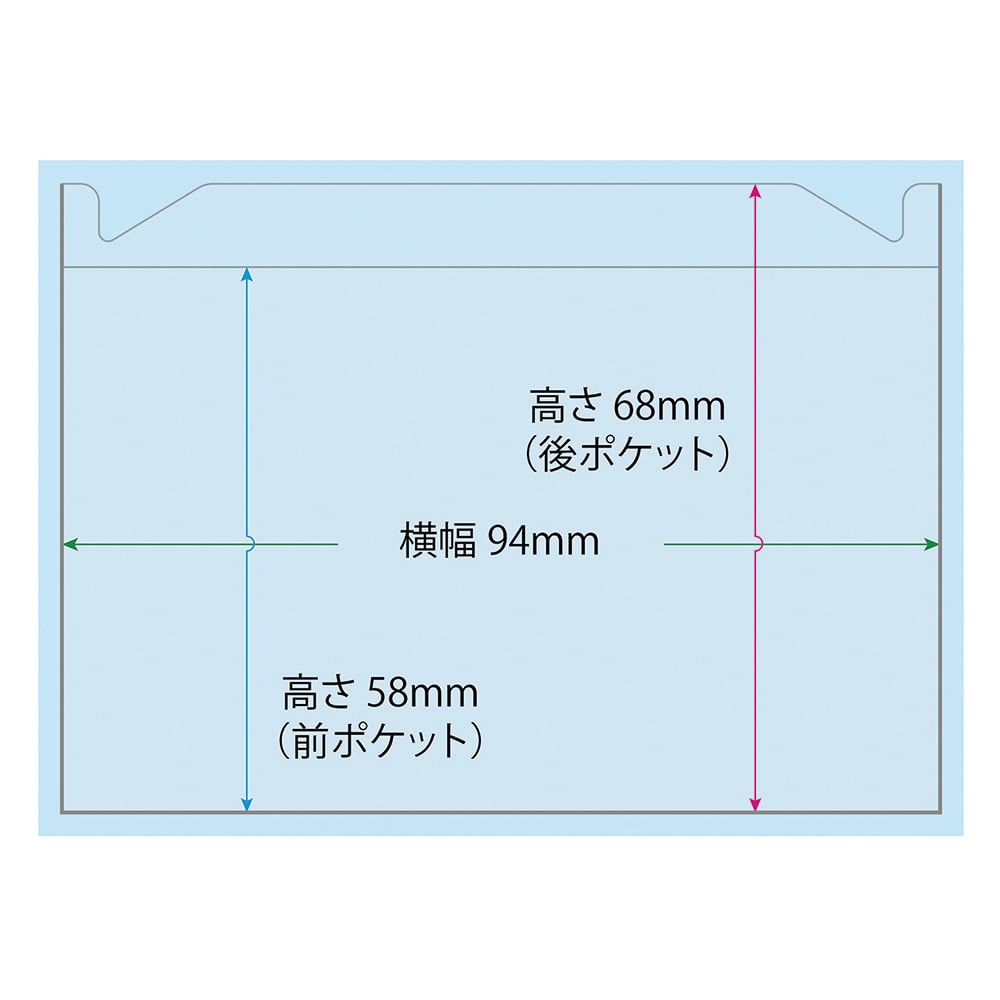 Pocket (front): 58mm long x 94mm wide