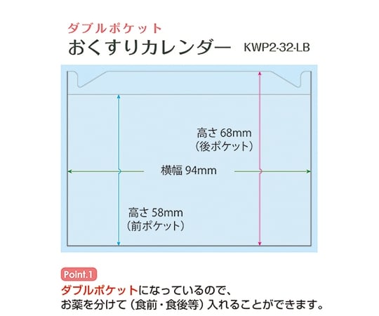 Medication calendar double pocket 1 sheet KWP2-32-LB 1 sheet