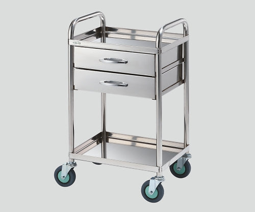 It is a two-drawer type with excellent storage capacity. The cabinet is extremely quiet when moved, thanks to the use of noise-reducing casters and special vibration-damping materials. The cabinet is extremely quiet when placed on the shelf or moved, thanks to thorough noise-reducing measures such as the use of special vibration-damping materials that absorb sound and the use of particularly quiet casters. Number of shelves: 2 Width x Depth x Height (mm): 453 x 353 x 802 Effective tabletop size: 398 x 348 mm - Weight(kg):12.2 Material: Stainless steel (SUS304) Casters: φ100mm (silent casters, no stoppers) Drawer effective internal dimensions: (width) 390 x (depth) 328 x (height) 100 mm x 2 Load capacity: 30kg Shelf spacing: 300mm Foot pipe diameter: φ25mm