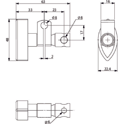 Catalog number: TMA-CL (8X8) Features: ●Adjustable without tools. Specifications: ●Compatible size (mm): φ8×φ8 ●Width (mm): 48 ●Height (mm): 48 ●Nominal dimensions (mm) d×L: 16 ●Jungle gym series