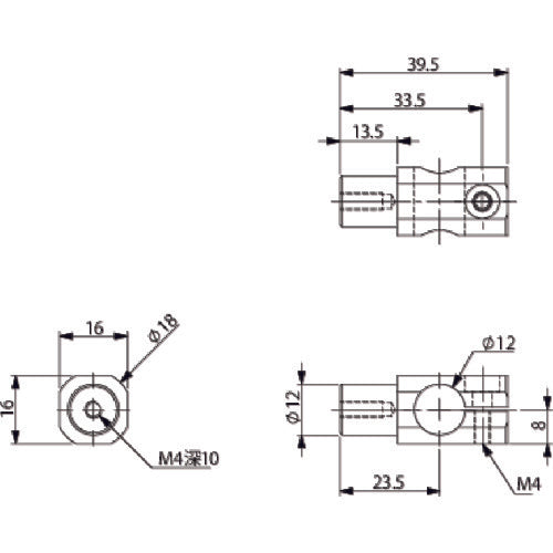 Catalog number: N01864-301 Features: ●The angle can be changed by combining with a cross connector. Specifications: ●Compatible size (mm): φ12, φ12 ●Width (mm): 39.5 ●Depth (mm): 16 ●Height (mm): 16 ●Nominal dimensions (mm) d×L: 16 ●Jungle gym series Material/Finish: ●Super duralumin