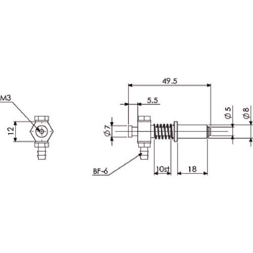 Catalog number: VFIL2-SS-10-P8 Features: ● Shock is absorbed by the built-in spring. ● The suction pad can be easily attached. Specifications: ● Diameter (mm): 12 ● Mounting connection: φ8 ● Height (mm): 49.5 ● Compatible pad (mm): φ4 to 14 ● Stroke (mm): 10 ● Vacuum outlet ● Series: Mini ● Mounting screw: M10. 1.0 ● Connection hose diameter: φ6 ● Piping (mm): φ6