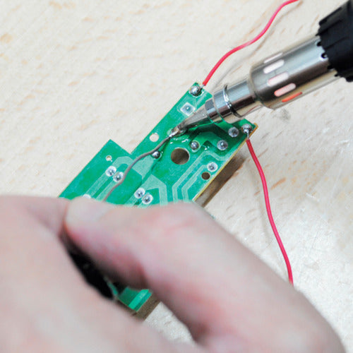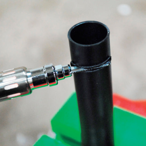Catalog number: 2005000005527 Features: * Gas soldering iron that does not require a power source, ideal for working outdoors or inside a car. * Can use commercially available gas for gas soldering irons and gas for gas lighters. * Comes with a sight glass that shows the gas volume. * Ignition is done with one touch without using a lighter, and has a lock button to prevent accidental operation. * The ignition lever can be used as a stand to prevent the tip from touching down or rolling. Specifications: ● Total length (mm): 185 (without cap, when soldering iron tip is attached) ● Weight: 68g (without cap, when soldering iron tip is attached) ● Ignition method: One-touch piezoelectric ignition method Material/Finish: ● PA (main body) ● POM (ignition lever) ● Copper (tip) Set contents/Accessories: ● Soldering iron cap x 1 ● Soldering iron tip 1 mm x 2 (1 already attached) ● Soldering iron tip 2.4 mm x 1 ● Hot knife tip x 1 ● Bent tip x 1 ● Tip replacement wrench x 1