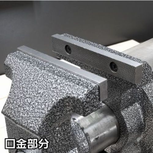 Catalog number: 2003000007909 Features: ●This bench vise can be used for metal processing, pipe cutting, and striking work with an anvil. ●It comes with a pipe vise that is convenient for cutting pipes and an irregular object vise that can hold irregular objects. ●It comes with a vise section that rotates 360° and a rotating table that rotates 360°, so the direction and angle of the workpiece can be freely adjusted. Specifications: ●Total length (mm): 420 ●Width (mm): 152 ●Height (mm): 223 ●Jaw width (mm): 125 ●Jaw opening (mm): 120 ●Jaw depth (mm): 65 ●Type: Bench vise ●Handle length (mm): 228 ●Anvil size (mm): 80 x 65 ●Opening width (practical width) (mm): approx. 120 Caution: ●This product is heavy, so be sure to have two people install it. ●Be sure to secure it firmly to a stable workbench that is strong enough. ●Bolts and nuts to secure the main body are not included.