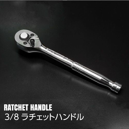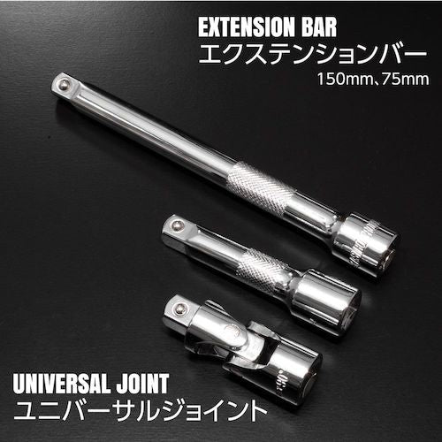 Catalog number: 2012000001824 Features: ●Tool set with 3/8DR (9.5mm) drive that includes ratchet handles and sockets in a compact case. ●Portable and unobtrusive size, it can be used as a car tool. Specifications: ●Set contents: 3/8DR ratchet handle x 1, 3/8DR sockets: 6, 8, 10, 12, 13, 14, 15, 16, 17, 18, 19, 21mm x 1 each, 3/8DR extension bar 75mm x 1, 3/8DR extension bar 150mm x 1, 3/8DR universal joint x 1 ●Case size (width x depth x height): W225 x D125 x H45mm Caution: ●Not compatible with impact wrenches. ●Do not insert a pipe or other object into the ratchet handle to extend it. ●The ratchet handle is for quick rotation only. ●When carrying the product, be sure to lock the lid securely.