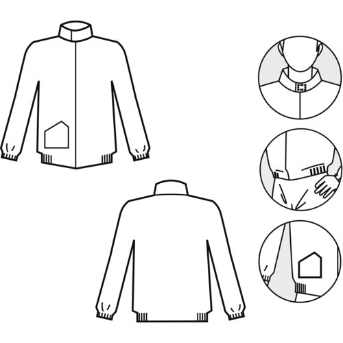Catalog number: 2110A-M Features: ●Separate type that prioritizes ease of movement. ●Suitable for work in environments with heavy paint and oil stains, such as painting, paint spraying, and car repair. Uses: ●For painting, paint spraying, and car repair. Specifications: ●Color: White ●Size: M ●Suitable height (cm): 152-164 ●Suitable chest circumference (cm): 76-92 ●Number of items per box (wear): 100 ●Type: Jumper ●JIS T 8115 type PB (6) compliant ●Disposable type ●Elastic cuffs and hem ●Right front pocket ●Stand collar ●Seams are insewn Material/Finish: ●Tyvek [R] (polyethylene) Note: ●Not heat resistant or flame retardant. ●DuPont(TM), Tyvek(R), DuPont(TM), and Tyvek(R) are trademarks or registered trademarks of affiliates of DuPont, Inc. in the United States.