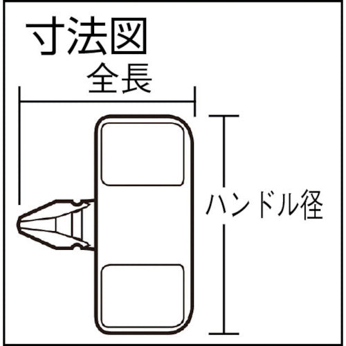 Catalog number: 59 Features: ● With a total length of 22 mm, it can be used in tighter spaces. ● The bit can be easily attached and removed. ● Uses an ultra-short bit (19 mm). ● The magnet inside the grip holds the bit. Uses: ● For screwing in tight spaces Specifications: ● Tip: [+] No. 2 x 19 mm ● Shaft length (mm): 9 ● Total length (mm): 22 ● Handle diameter (mm): 30 ● Tip: Magnet included Material/Finish: ● Bit: Special alloy steel ● Grip: Polypropylene, magnet Note: ● The main body is available in three colors (red, yellow, and green), but please note that we cannot accept requests for specific colors when placing an order.