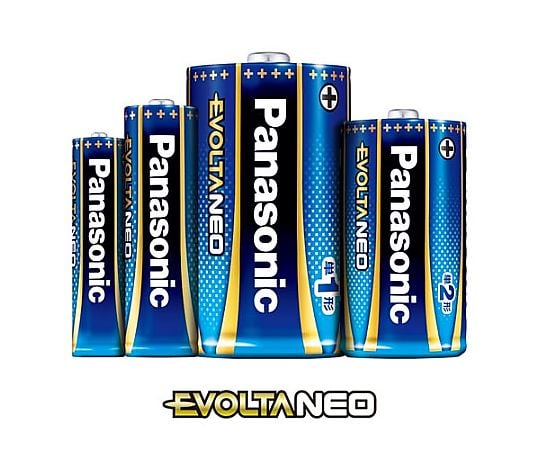 Demonstrates performance superior to EVOLTA dry batteries over a wide range of currents, from small to medium and large. Type: AA
