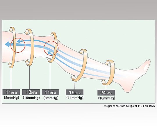 Compression pressure: Ankle/24hPa (18mmHg), Calf/19hPa (14mmHg), Knee/11hPa (8mmHg), Lower thigh/13hPa (10mmHg), Mid-thigh/11hPa (8mmHg)