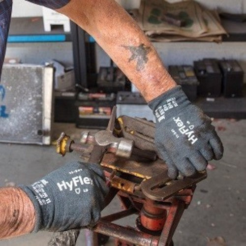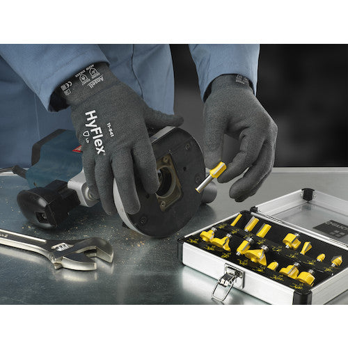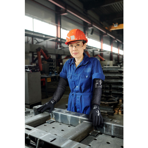 Catalog number: 11-541-11 Features: *Special price (60% off previous price) while stocks last. *Knitted with yarn based on Ansell's proprietary InterceptTM technology, it combines the highest level of cut resistance and comfort. *Proprietary nitrile coating technology maintains thinness and breathability. Applications: *Manufacturing of automobiles and other machinery. *Metal processing. *Various maintenance work. Specifications: Color: Black/Gray Size: XXL Total length (cm): 19.6-25.0 Palm circumference (cm): 22.6 Middle finger length (cm): 8.9 Thickness (mm): 1.19 Gauge: 18 EN388 2016 Standard: 4X21D Cut resistance level: X/D 18 gauge knit EN388: 2016 Cut resistance level D EN388 Standard: Abrasion resistance level 4, Cut resistance level 4, Tear resistance level 2, Puncture resistance level 1 Contact temperature: 100°C (15 seconds) Heat resistance standard EN407: X1XXXX Material/Finish: Liner: Kevlar, nylon, spandex, stainless steel Anti-slip part: Foamed nitrile rubber