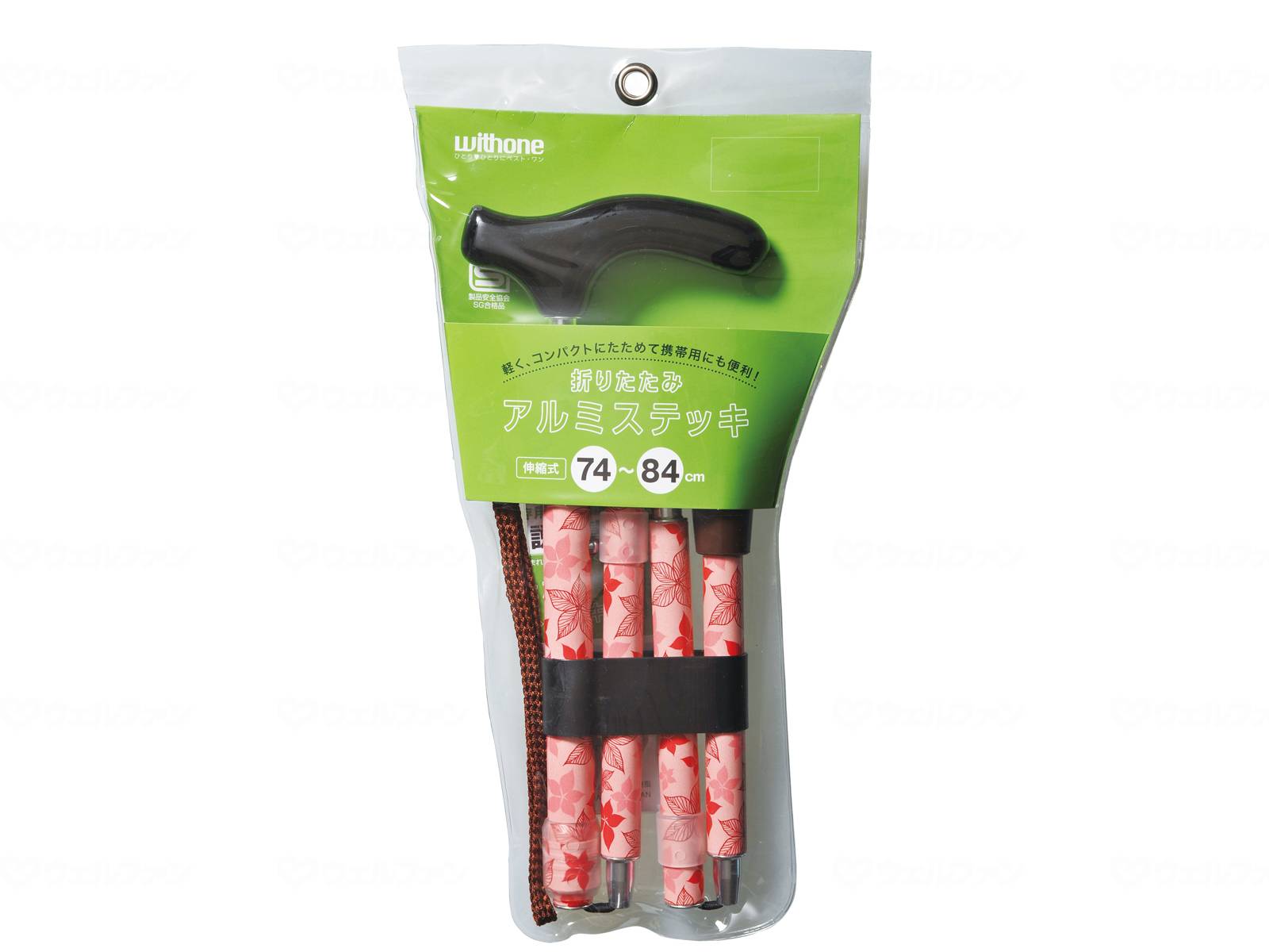 WithOne Folding Aluminum Walking Stick EAS Azalea Pink