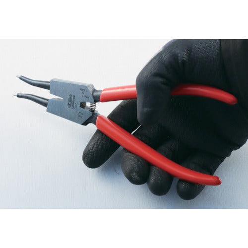 Catalog number: OS175 Features: ●Hard piano wire is used for the tip bit, realizing high durability and abrasion resistance. ●The tip is reverse tapered and the bit is treated with anti-slip processing. ●The ring adheres to the holder and is fixed when installed, improving workability and safety. Uses: ●Hard piano wire is used for the tip bit, realizing high durability and abrasion resistance. ●The tip is reverse tapered and the bit is treated with anti-slip processing. ●The ring adheres to the holder and is fixed when installed, improving workability and safety. ●4 types: for shafts with straight claws, for shafts with curved claws, for holes with straight claws, and for holes with curved claws! Specifications: ●Ring use range (mm): 19-40 ●Claw tip diameter (mm): 1.8 ●Total length (mm): 174 ●Claw shape: Straight claw ●Model: For shaft ●With spring ●Total length 174mm ●Ring use range: 19-40mm ●Claw tip diameter: 1.8mm Material/Finish: ●Special steel ●Grip: Resin Caution: ●The snap ring may come off and fly away. Please make sure that your surroundings are safe before working. ●Be sure to read the instruction manual carefully before working and use it correctly after fully understanding it. ●The dimensions and weight are nominal values, so there may be some variation in the values.