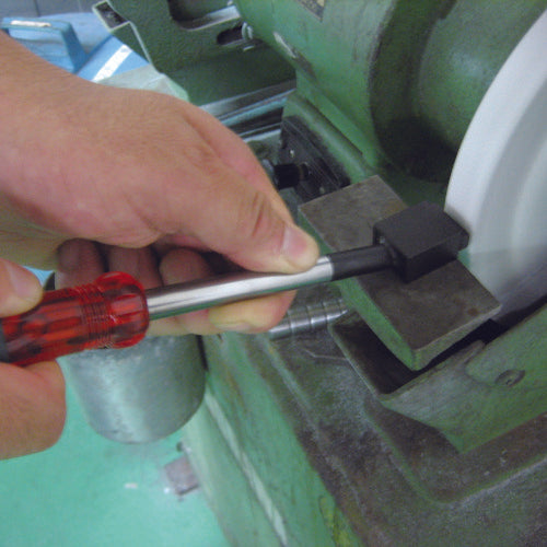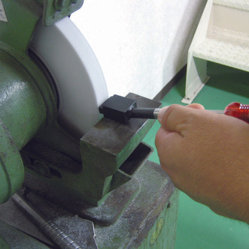 Catalog number: SHD-001 Features: ● Dressing can be done with light force. Fewer sparks and less noise make it friendly to the work environment. ● Lightly place the tip parallel to the grinding wheel surface and slide it left and right to use. Uses: ● For sharpening, edging, and removing runout of grinding wheels for double-headed grinders. Specifications: ● Total length (mm): 250 ● Width (mm): 34 ● Blade width (mm): 22 ● Thickness (mm): 7 ● Grip diameter (mm): 34 ● Blade width: 22mm