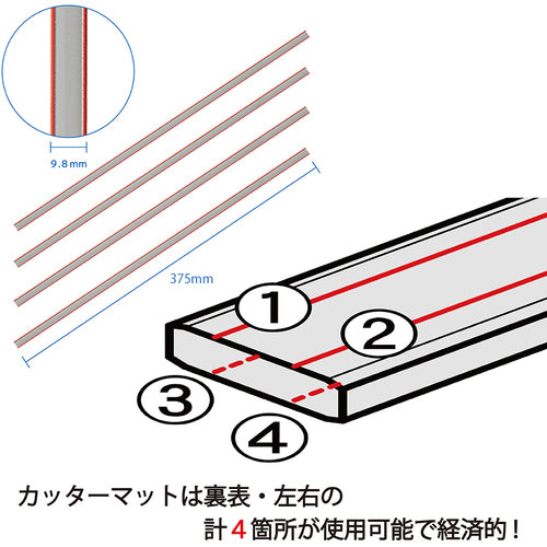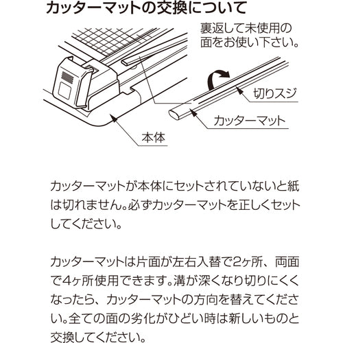 Catalog number: DCM-310 Features: ●Replacement cutter mat for disc cutters. ●By replacing the cutter mat, you can maintain a more comfortable sharpness. ●The cutter mat can be used in two places on one side by switching between left and right, for a total of four places on both sides. Specifications: ●Total length (mm): 375 ●Depth (mm): 9.8 ●Height (mm): 3 ●Compatible models: DC-F5100-K, DC-210N, DC-600, DC-200NA, DC-2000N ●Compatible models (discontinued): DC-100, DC-100N, DC-200, DC-210, DC-212, DC-300, DC-300N, SHC-100, DE-200, DC-CA4, DC-F2100 ●Quantity: 4 pieces per bag Material/Finish: ●PVC