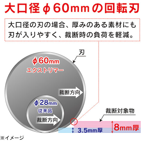 Catalog number: XTM-1300 Features: ●This rotary blade cutter allows anyone to easily cut in a straight line with light force just by moving the slider. ●The large diameter φ60mm rotary blade can cut materials other than paper, such as wood grain covers, cloth, leather, and rubber sheets. ●The rotary blade tension can be adjusted to the optimum state according to the hardness, thickness, and density of the material to be cut with the dial. ●The LED light (uses one AA battery, sold separately) allows you to work in dark places, making it useful in factories and warehouses. ●The blade can be replaced with a cassette type, so you can replace it without touching the blade. Specifications: ●Total length (mm): 1674 ●Depth (mm): 250 ●Height (mm): 118 ●Cutting width (mm): 1300 ●Compatible replacement blades: TRC-600, TRC-610, TRC-620 ●Compatible replacement mats: M-1500 ●Rotary blade cutter ●Large diameter Φ60mm rotary blade ●Safe cassette type ●Maximum cutting thickness: 8mm ●With blade tension adjustment function ●With LED light (AA battery sold separately) ●Blade and cutter mat are already attached to the main unit at the time of purchase. Material / Finish: ●Aluminum, plastic, metal Set contents / Accessories: ●Blade and cutter mat are already attached to the main unit. Note: ●Blade and cutter mat are already attached to the main unit at the time of purchase. ●Not suitable for cutting adhesive materials. ●Cutting of all objects up to 8mm thick is not guaranteed. ●Cutting may not be possible depending on the hardness, thickness, and density of the object to be cut.
