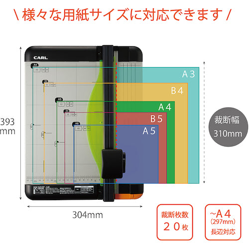 Catalog number: DC-600 Features: ●Two sides can be used depending on the cutting purpose. ●The left and right boards next to the slider rail can be used to place the paper guide ruler depending on the cutting purpose. ●The rotating blade is attached inside the slider, allowing for safe cutting. ●For fine cutting such as cutting strips, the paper guide ruler can be placed on the right board for efficient cutting (with scale display). ●A 20-sheet cutter that uses a light-collecting material for the paper pressure plate, making it easy to grasp the cutting position. ●The cutting method of sliding while pressing the slider allows for safe and accurate cutting with little force. ●When cutting standard paper in half, the paper guide ruler can be placed on the left board for accurate cutting. Specifications: ●Total length (mm): 393 ●Depth (mm): 304 ●Height (mm): 79 ●Cutting width (mm): 310 (A4 size) ●Compatible replacement blades: K-18, DCC-28, DCC-29 ●Type: A4 size ●Main body size W (mm): 304 ●Main body size L (mm): 393 ●Main body size H (mm): 79 ●Compatible replacement cutter mat: DCM-310 ●Rotary blade cutter ●Number of sheets cut: 20 sheets with round blade, 3 sheets with perforation blade Material/Finish: ●SPCC, ABS Note: ●The round blade and cutter mat are already attached to the main body at the time of purchase.