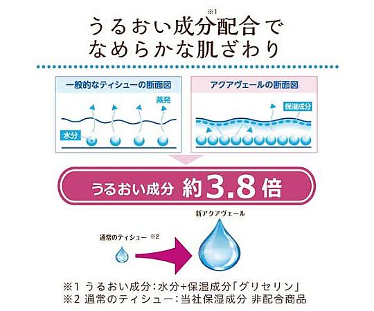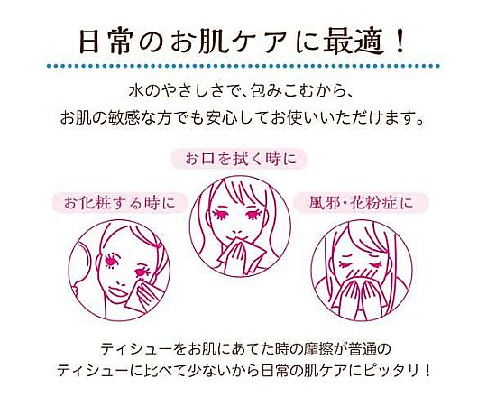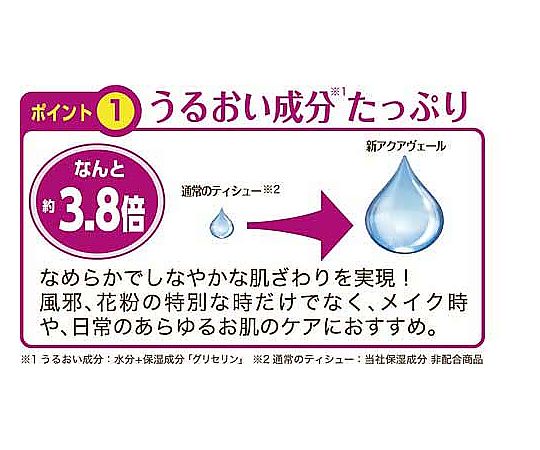 The moisturizing ingredients absorb and retain moisture, making the surface of the tissue smooth and flexible. Box dimensions: 238 x 110 x 63.6 mm (1 box)