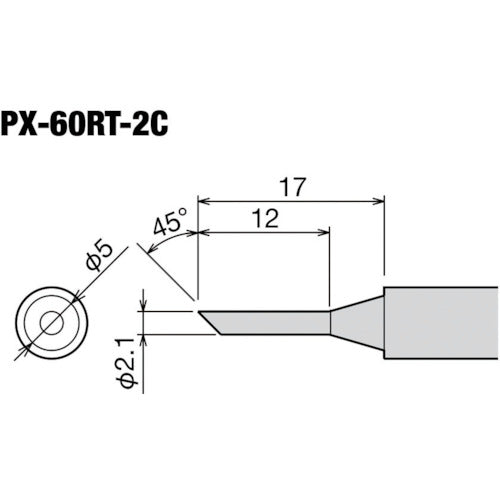 Catalog number: PX-60RT-2C Specifications: ● Product name: Replacement tip ● Tip name: φ2.1mm ● Compatible models: PX-601, PX-601AS, PX-501, PX-501AS, RX-701AS, RX-711AS, CXR-31, CXR-41 ● Heater separation type