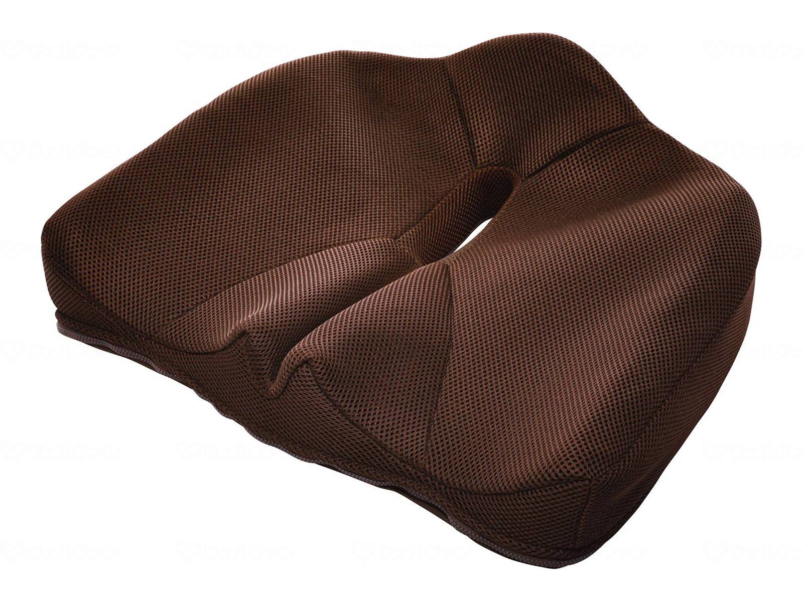 It fits around the waist from the outside and uses memory foam containing bamboo charcoal.