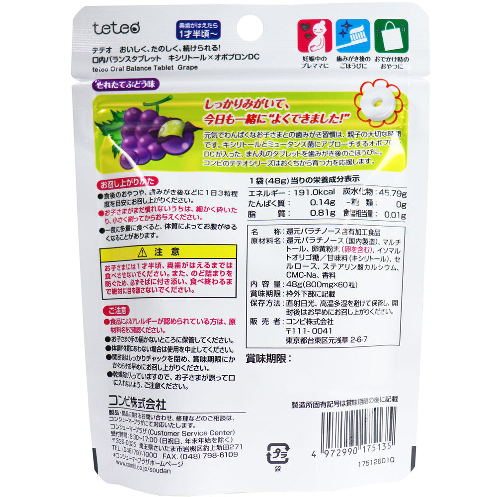 Combi Teteo Oral Balance Tablets Xylitol x Ovopron DC Freshly Picked Grape Flavor 60 Tablets 1 pc