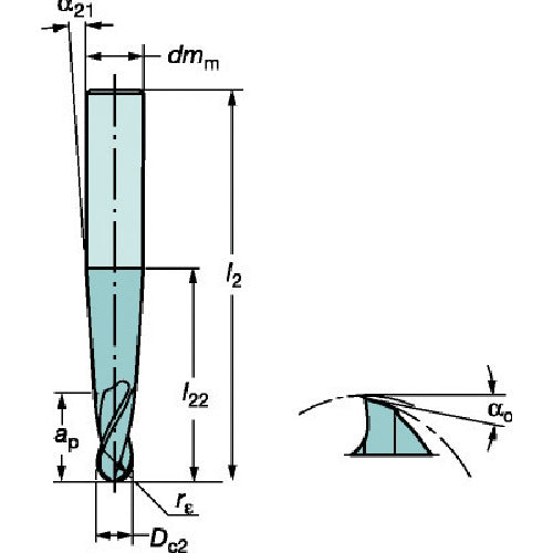 Catalog number: R216.52-04040RAL10G Features: ●Solid end mill that demonstrates the highest productivity for all work materials and machining. ●Double flute shape achieves both rigidity and chip disposal. Applications: ●Work materials: steel, stainless steel, cast iron, non-ferrous, heat-resistant alloys, hard materials. ●For end mill machining of all work materials. Specifications: ● Blade diameter (mm): 4 ● Ball radius (mm): 2 ● Blade length (mm): 10 ● Total length (mm): 80 ● Shank diameter (mm): 8 ● Number of blades (pieces): 2 ● Surface treatment: TiAlN multi-layer coating ● Twist angle (°): 30 ● Number of blades: 2 ● α21 (°): 3 ● α0 (°): 16 ● ZEPP: 2 ● RE: 2.0 ● LU: 42.9 ● LF: 80 ● DMM: 8.0 ● DCX: 4.0 ● APMX: 10.0 ● Dc2 ● DC3 ● Zn Material/Finish: ● Ultra-fine grain carbide alloy