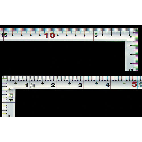 Catalogue number: 10511 Features: ● A ruler for marking accurate right angles on materials. ● Thicker than a normal curved ruler, so it is durable. ● Small, easy to use, and convenient to carry. Specifications: ● Precision straightness: 0.1 mm or less per 100 mm ● Length tolerance: ±0.2 mm or less ● Surface scale ● Long branch: outer scale 30 cm ● Short branch: outer scale 15 cm Material/Finish: ● Stainless steel Caution: ● Do not use in places where it may come into contact with electricity.