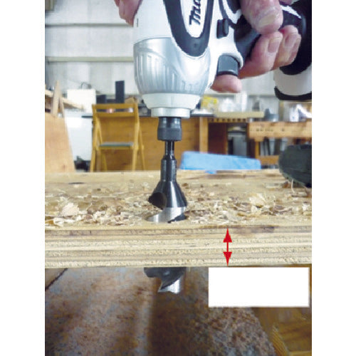 Catalog number: 7M-030 Features: ●By making the tip thread and marking blade smaller than conventional drills, cutting resistance is reduced and battery life is improved, making it ideal for use with impact drivers. Applications: ●Cutting material: wood. ●For slightly deeper through holes Specifications: ●Blade diameter (mm): 3 ●Groove length (mm): 60 ●Total length (mm): 110 ●Shank shape: Hexagonal shaft ●Shank diameter (mm): 6.35 ●Compatible models: Impact drivers, drill drivers, electric drills Material/Finish: ●Carbon steel (S55C) Note: ●Separate shipping charges for Okinawa and remote islands