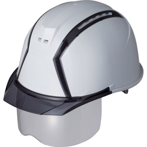 Catalogue number: MXCS-B-12-G Features: ●Comfortable to wear thanks to mesh hammock that releases moisture from inside the helmet. ●Comes with a transparent visor shield to cushion the impact of flying objects from the front. Uses: ●For flying or falling objects ●For fall protection Specifications: ●Hat body color: Snow White ●Visor color: Gray Smoke ●Shield color: Clear ●Shock absorbing liner: Yes ●For fall protection: Passed ●Type: Industrial ●Ventilation holes: Yes ●Grooves: Yes ●One-touch removal without removing the interior Equipped with a shield guide. ●Ear straps: Standard MKC ear straps ●Chin straps: Standard OM band (one-touch type) Material/Finish: ●Hat body: ABS resin ●Visor: PC resin ●Shield: PC resin
