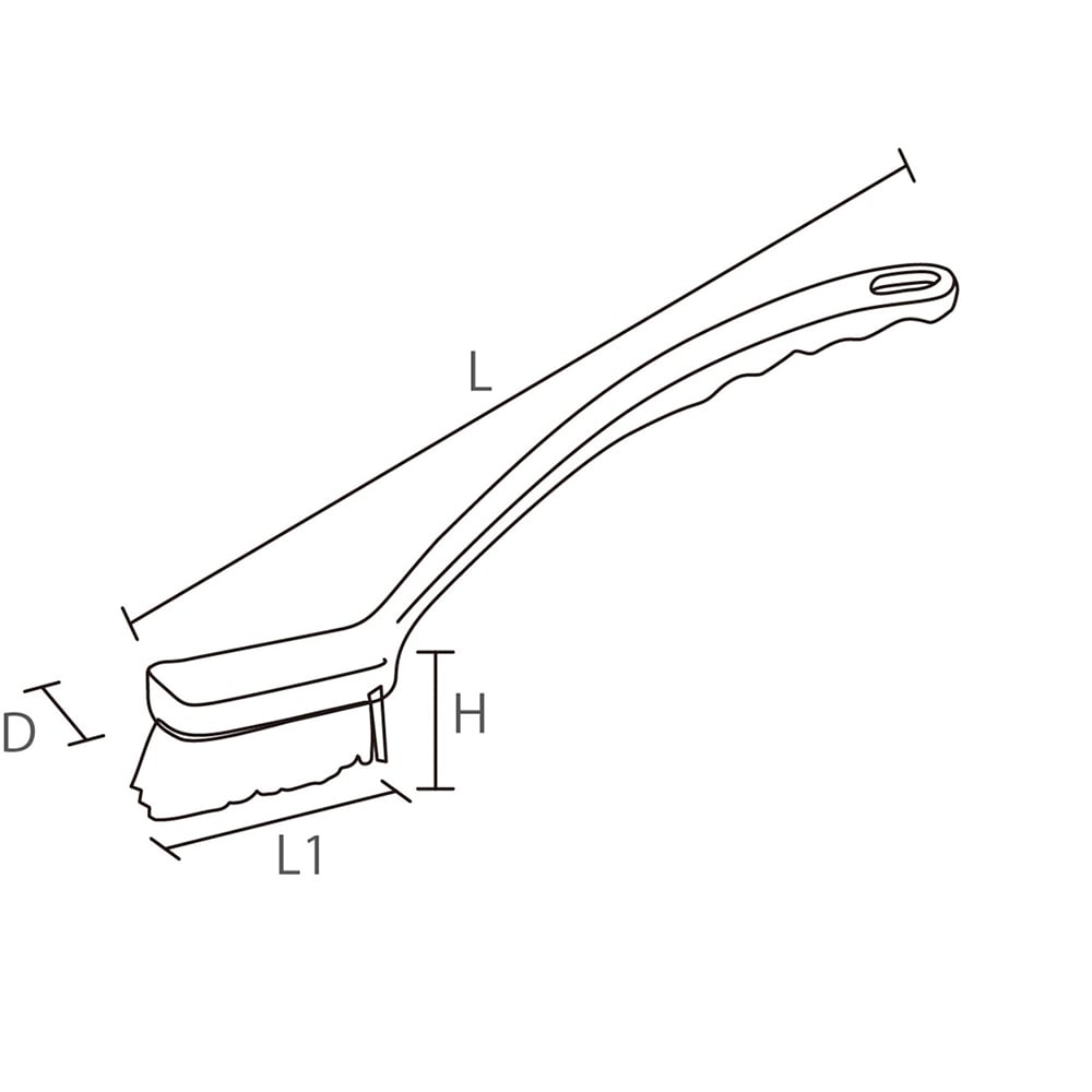 The hard bristles and curved grip allow for powerful scraping action for cleaning.