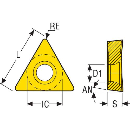 Catalog number: TCGT110202R-UX Features: ●Positive insert for turning, TC specification. Specifications: ●D1 (mm): 2.8 ●AN (deg): 7.0 ●L (mm): 11.0 ●RE (mm): 0.2 ●S (mm): 2.38 ●SECO positive insert general-purpose PVD coating