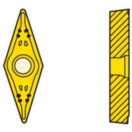 Catalog number: VBMT160408-F1 Features: ●Positive insert for turning, VB specification. Specifications: ●D1 (mm): 4.5 ●AN (deg): 5.0 ●L (mm): 16.61 ●RE (mm): 0.8 ●S (mm): 4.76 ●SECO positive insert PVD coating for high hardness machining