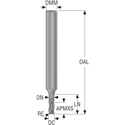 Catalog number: JSE513040G2R050.0Z3 SIRA Features: ●A 3-blade end mill with excellent cost performance. ●The JSE510 series is the lowest priced solid end mill series and is suitable for most milling applications. Specifications: ●Shank type: Cylindrical ●PCEDC (number of teeth): 3 ●DC: 4.0mm ●DMM: 6.0mm ●OAL: 57.0mm ●APMXS: 8.0mm ●RE: 0.5mm ●Cmax: 6.95mm Cmin: 5.2mm ●LN: 13.0mm ●Coating: SIRON-A