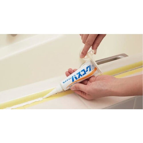 Catalog number: HJ-153 Features: ● A sealant with excellent water, heat and weather resistance. ● Contains anti-mold agents that prevent mold growth. ● Excellent adhesion to plastics. ● Can also be used on polycarbonate and acrylic. ● Low odor type. Uses: ● For waterproofing gap seals in bathrooms, washbasins and tiles. Specifications: ● Color: White ● Capacity (ml): 100 ● JIS standard: × ● Anti-mold type: Anti-mold type ● Capacity (L): 0.1 ● Standard usage: 1.8m/50mm tube (for joints 5mm wide x 5mm deep) ● Tube type Material/Finish: ● Main component: Silicone resin Set contents/Accessories: ● Masking tape ● Nozzle ● Spatula ● Squeezer