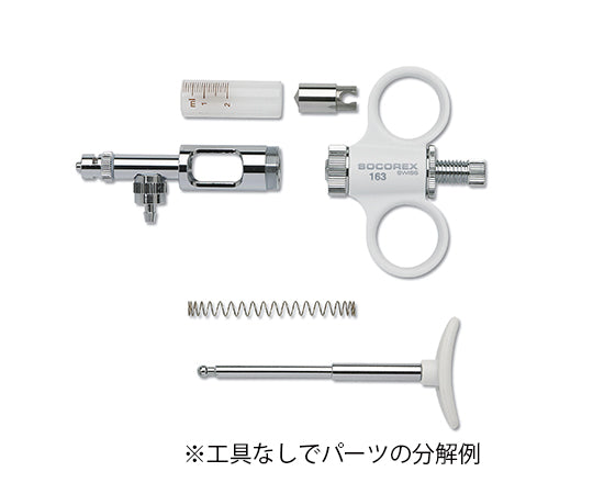 Material: Barrel/heat-resistant glass, packing/PTFE, valve/nickel-chrome brass, piston/stainless steel (SUS430), washer (black)/Viton(R), sinker/chrome-plated brass, tube/silicon