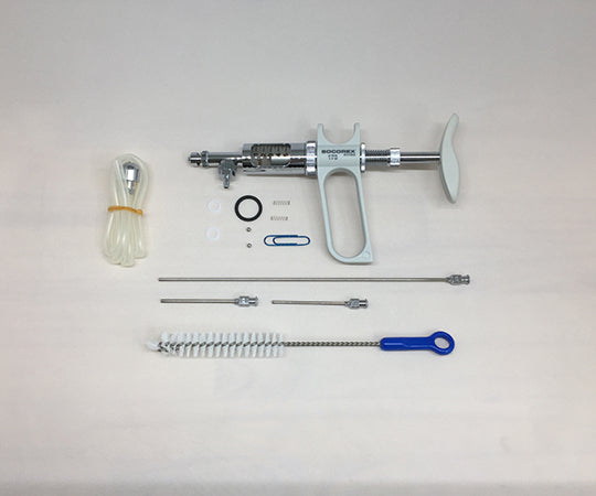Contents: Continuous dispenser, 1 each of S, L, and LL needles, silicone tube with metal sinker, spare parts set, barrel cleaning brush