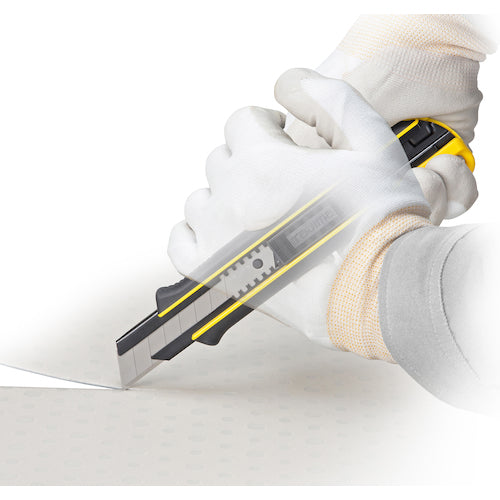 Catalog number: DC680/Y Features: * 0.65mm thick blade with strong tension and stiffness. * Long grip type caulking cutter with strong pull handle. * 22mm pitch width that is hard to bend or flex. * Ideal for cutting gypsum board/interior materials. * Long grip with grip section of approximately 180mm. * Doubles cutting speed and power. * Compact size that can be carried in a tool bag. * Elastomer resin grip that is firm to hold and non-slip. * The holder is designed to hold the back of the blade firmly, making it hard for the blade to break. * The slider is a precision slider that transmits a solid clicking sensation. Uses: ● Professional cutter that is strong for deep cuts and peeling Specifications: ● Overall length (mm): 205 ● Blade thickness (mm): 0.65 ● Blade length (mm): 100 ● Compatible replacement blades: CB62-7H/Y, CB-62 ● Color: Yellow ● Type: Auto-locking ● For cutting insulation materials, plasterboard, plywood, etc. ● J-type extra thick replacement blade holder ● 1mm thick hardened holder that is 3.5 times stronger (compared to our other products) ● Blade thickness: 0.65mm Materials/Finish: ● Body: ABS resin, elastomer resin ● Holder: Stainless steel ● Blade: Carbon tool steel (SK120) Note: ● Blades are not included with the body.