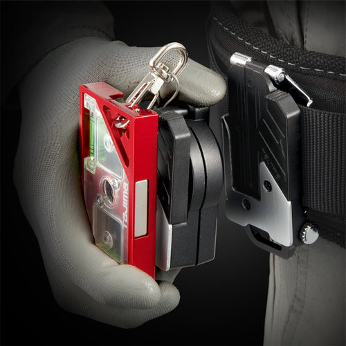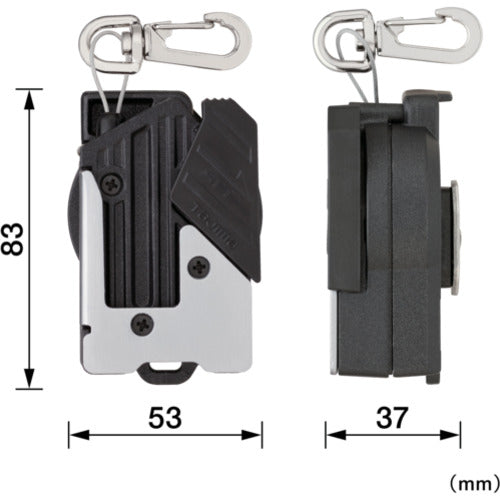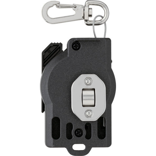 Catalogue number: SFAZ-ROPM10W Features: *Automatic retraction safety rope to prevent tools from falling, keeping the area around the waist neat *Safe holder on the front, safety hook on the back, allows tools to be changed along with the safety rope without any fine work *Automatic retraction makes it easy to move around as the wire is always under a constant tension, reducing the risk of the dangling wire getting caught on scaffolding, etc. *Aluminum die-cast body with excellent impact resistance that can withstand the weight of tools *Equipped with a shock absorber with a built-in shock absorbing mechanism to prevent the tool from bouncing back, even if the tool is dropped *Equipped with a hole for tying the holder *Equipped with a snap hook. ●Compatible with most tools, from levels to pendulums. Uses: ●Tool holder Specifications: ●Width (mm): 53 ●Cord length (mm): Maximum extension: 1200 ●Color: Black/Silver ●Maximum length (mm): 1200 ●Maximum load (kg): 1 ●Applicable tool weight: 1.0kg or less ●Rope length: 1,200mm Material/Finish: ●Winching device: Aluminum die-cast ●Wire: Metal Caution: ●This is not a metal fitting for supporting body weight. ●To ensure safety, do not use with tools or other products that weigh more than the specified weight. ●Product specifications are subject to change without notice. ●Please note.