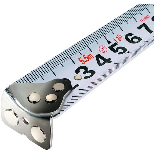 Catalog number: RSFGLM25-55BL Features: ●The body rotates even if it hits or bumps into something, so it is a new rotating safety function that reduces impact on the body and does not get caught. ●Comes with a belt holder to prevent dropping, which can be easily attached and removed with one hand. ●The armored case protects the conveyor from impacts. ●Comes with a hook guard bumper to protect the claws from impacts when dropped. ●Zero point correction movable claws. Applications: ●For measuring length. Specifications: ● Tape length (m): 5.5 ● Tape width (mm): 25 ● Horizontal hold (m): 2.4 ● 0-point correction moving claw: ○ ● 455 pitch display: ○ ● Shock absorber: Yes ● Lock specifications: With lock ● JIS Class 1 ● Double-sided scale ● With strap ● With fall prevention belt holder ● 3-point crimp claw with protector ● Claw: Magnetic claw specification (neodymium magnet 260mT) ● Attachable belt size: Width 60mm or less, thickness 5.5mm or less Material / Finish: ● Tape: Steel ● Case: ABS ● Claw: Stainless steel ● Spring: Steel Caution: ● This product is electrically conductive. ● Be careful of electric shock. ● Please wear gloves as there is a risk of cutting your hands on the edge of the tape. ● Product specifications are subject to change without notice. Please note.