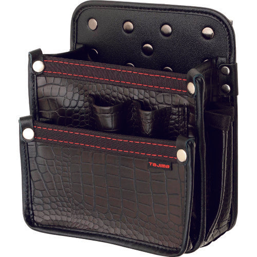 Catalog number: SFKBG-DK2L Features: ●The gloss and unevenness of the crocodile pattern give it a unique sense of luxury and presence. ●It is removable and easy to rearrange around the waist. ●It uses a retrofit holder that can be inserted from the middle without removing the belt. ●It is made of flexible synthetic leather that is strong and easy to work with. ●The standard shape of the belt bag is suitable for a wide range of craftsmen and has a side clip (on the back) to prevent it from floating off the belt. ●It can store a variety of tools such as pliers, nippers, full screwdrivers, and voltage testers. ●It has a large pocket that can store bulky materials such as cable rack joints. ●The shape makes it easy to crush the belt bag with one hand even when entering a narrow space. Specifications: Color: Black Shape: Large 2-tier electrician Width (mm): 230 Depth (mm): 160 Height (mm): 250 Belt loop width (mm): 50 Total weight of items stored when installing the safe: Supports 3kg Replacement parts: Slide stopper for safe retrofit holder SF-CHLDST Material/Finish: Synthetic leather Set contents/Accessories: SF-CHLD Caution: Be sure to use within the allowable total weight. Read the instruction manual carefully before use. Product specifications are subject to change without notice. Please be forewarned.