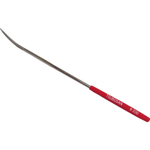 Catalogue number: TDKA20J Features: ●Diamond grains are fixed using the NI electroplating method. Performance such as adhesion, grinding ability, and abrasion resistance has been improved. ●The diamond part is bent into a trowel shape. ●The wire diameter is the same as that of the S-10 type diamond file. Applications: ●For correcting small details such as the bottom and groove edges of molds. ●For grinding high-hardness materials such as ceramics, carbide metals, and hardened steel. Specifications: ●Grain size (#): 200 ●Shape: Square ●Total length (mm): 170 ●Blade length (mm): 25 ●Handle shape: Round ●Width (mm): 2.7 ●Thickness (mm): 2.7 Material/Finish: ●Carbon tool steel
