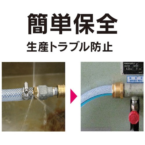 Catalog number: TC3-S12-R1/2 Features: ● Prevents hoses from coming loose and fluid leaks, reducing production problems. ● [Leak and fall-off prevention hose fitting] This hose fitting prevents production problems such as fluid leaks and hoses coming loose, allowing for stable production. ● [Standardization of installation work] This hose fitting allows for uniform installation work by simply tightening the bag nut all the way. In addition, there is no need for additional tightening work like with hose bands. ● [Energy saving] Compared to general bamboo shoot fittings, the effective cross-sectional area is wider and pressure loss can be reduced, so you can expect a reduction in power consumption. ● [Easy installation] Compared to conventional fittings, the hose mouth is the same diameter as the hose, making it easier to insert the hose and reducing piping time. ● [Risk reduction] Prevents piping problems such as leaks and fall-offs due to vibration and earthquakes. ● [Reusable hose fitting] When reusing, it can be reused by simply replacing the parts inside the fitting. Uses: ● For general industrial piping. Specifications: ● Fluids used: air, water (industrial water), chemicals, solvents, paints, oils ● Compatible hose inner diameter (mm): 12 ● Compatible hose outer diameter (mm): 18 ● Thread dimensions: R1/2 ● Dimension L (mm): 48 ● Dimension Φd1 (mm): 10 ● Dimension HEX1 (mm): 32 ● Dimension HEX2 (mm): 27 ● Operating pressure, operating temperature range: Conforms to compatible hose standards Material/Finish: ● Nipple, cap nut: SCS13 (equivalent to SUS304) ● Sleeve: Polyacetal ● Rubber packing: Nitrile rubber (NBR) Caution: ● This product is a hose fitting exclusively for Toyox hoses. If it is connected to a hose of another company or a hose other than the compatible hose, it may not be possible to fully demonstrate or maintain its performance, so we do not guarantee anything. ● Do not use the hose in an extremely bent state near the fitting. Use it with a bending radius larger than the minimum bending radius of the hose. ● Tighten the cap nut until there is no gap. If a gap is present when using the product, problems such as fluid leakage or the hose coming loose may occur. When reusing this product, be sure to replace it with a new sleeve. Also, be sure to use a new hose. Please check the material of the flow passage (inner surface) of this product. Deterioration or fluid leakage may occur depending on the type of fluid.