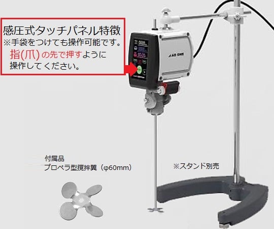 Accessories: Propeller-type stirring blade (60 mm), stirring blade fixing nut, stirring rod (φ8 x 500 mm), arm holder, arm bar