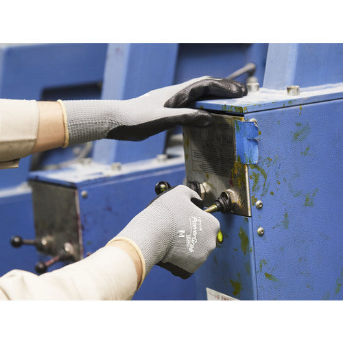 Catalog number: 513-S Features: ●Semi-long type covers the wrist from dirt, etc. ●Made of nitrile rubber that is oil-resistant, puncture-resistant, and scratch-resistant. ●It has about three times the abrasion resistance of natural rubber. ●Backless type with good breathability and fit, allowing you to work comfortably for long periods of time. ●13-gauge thin type, suitable for detailed work. Applications: ●For machine part assembly, machine maintenance, transportation, civil engineering and construction. Specifications: ●Color: Gray/Black ●Size: S ●Total length (cm): 23.0 ●Palm circumference (cm): 16.0 ●Middle finger length (cm): 6.9 ●Thickness (mm): Approximately 1.0 ●Gauge number: 13 ●Wrist color: Blue ●13-gauge knit Material/Finish: ●Fiber part: Nylon ●Anti-slip part: Nitrile rubber