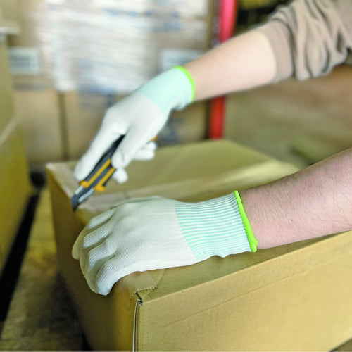 Catalog number: 179-S Features: ●High-strength polyethylene combined with glass fiber for improved cut resistance. ●The palm is coated with polyurethane to prevent slipping and improve work efficiency. ●Long fibers are used in the knitted gloves, so they generate less dust and are suitable for clean work. ●Can be reused by disinfecting and cleaning with hypochlorite. ●Low deterioration from ultraviolet rays makes them suitable for outdoor work. Applications: ●Glass industry, handling of glass substrates. ●Engine assembly, automotive industry, precision machinery industry. ●Aluminum sash assembly, non-ferrous metals, etc. Specifications: Color: White; Size: S; Total length (cm): 23.0; Palm circumference (cm): 18.0; Middle finger length (cm): 7.3; Thickness (mm): Approx. 1.1; Gauge number: 13; Wrist color: Pink; Anti-slip: Yes; 13 gauge knit; Cut resistance level: X/C (EN388:2016) Material/Finish: Fiber part: Polyethylene, glass fiber, nylon; Anti-slip part: Polyurethane