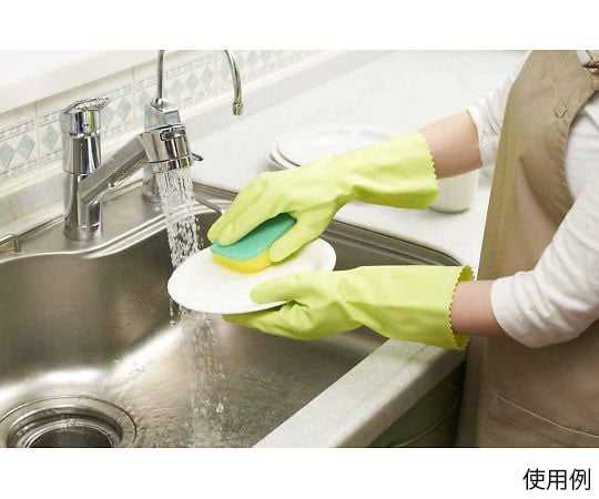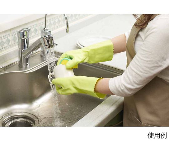 It is a medium-thick type that is soft and easy to use. Its unique pattern provides excellent anti-slip performance. Fiber is flocked on the inside of the gloves to make them easier to put on and take off. The hem is made thicker to make it easier to hold and put on and take off. The fleece lining has been treated with an antibacterial and deodorizing agent to inhibit the growth of bacteria on the fibers and prevent odors caused by sweat. It does not contain proteins that cause latex allergies. Made of polyvinyl chloride, it is more resistant to detergents and oils than gloves made of natural rubber. Size: L Color: Green Material: Resin part: polyvinyl chloride, non-phthalate plasticizer, fiber part: rayon, cotton