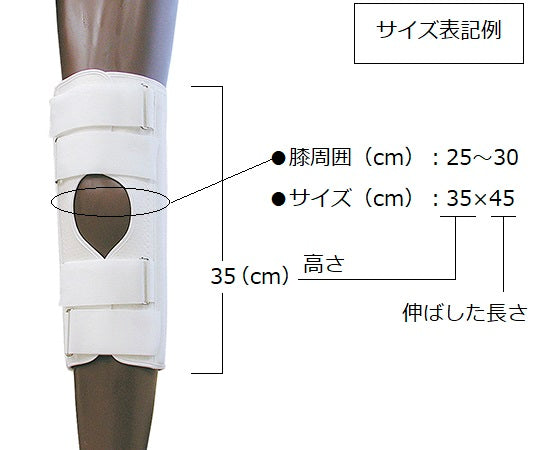 This is a knee joint immobilization belt that fixes the knee in an extended position. Both sides are made of thin aluminum stays and the flat surface is made of hardened aluminum stays for splints, allowing for secure fixation. The hook-and-loop fastener is attached to almost the entire surface of the main body, making it easy to put on and take off. Suitable for short women and elderly people. Specifications: Short M Knee circumference (cm): 30-35 Size (cm): 35×50 Material: Polyester, nylon, PU (polyurethane), aluminum Latex Free Washing instructions: Washable (hand wash), warm water, hang to dry, do not tumble dry, do not bleach