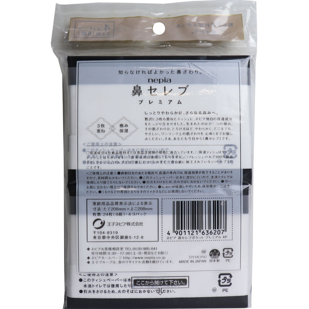 Nepia Nose Celeb Premium 3-ply Extremely Moisturizing Pocket Tissue 24 sheets (8 pairs) x 4 packs 1 piece